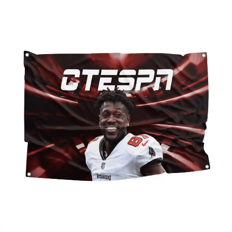 Antonio Brown’s CTESPN flag hilariously parodies ESPN with AB's wild tweets. Perfect for sports fans and college humor!